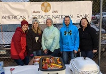 American Heritage Bank grilled burgers for the Browerville Homecoming game on October 1st. All proceeds benefit the Browerville Letterman's Club. Pictured L to R: Kathleen Nauber, Jessica Brown, Heidi Sudbeck, Molly Marlow and Denis Irsfeld. Not pictured is Tara Stanek.